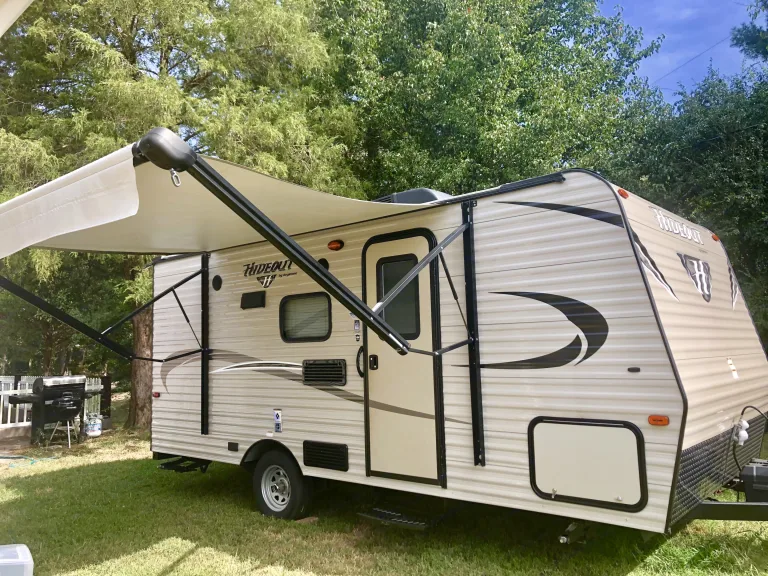 The Hideout is perfect for a ‘pack up and go’ camping experience! It comfortably sleeps our family of 5. We’ve even stocked it with essentials to help make your trip easier and more enjoyable! Our trailer is located 10 minutes off I-75 in Cleveland, Tennessee, just a short drive to Cherokee National Forest, Great Smoky Mountains, and Blue Ridge Mountains.Trailer Specifications:2016 Keystone Hideout Bunkhouse