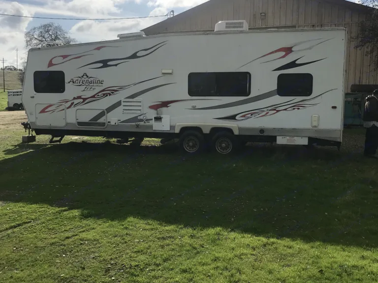 26’ toy hauler no slides has 14’ of cargo for toys has AC and 4,000 Watt Generator pulls ok with 1/2 ton truck