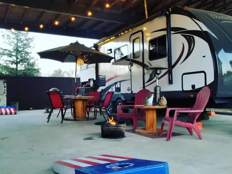 Very nice and clean travel trailer with bunk house. It is set up to camp on my property but I will deliver and set up at your campsite as well.