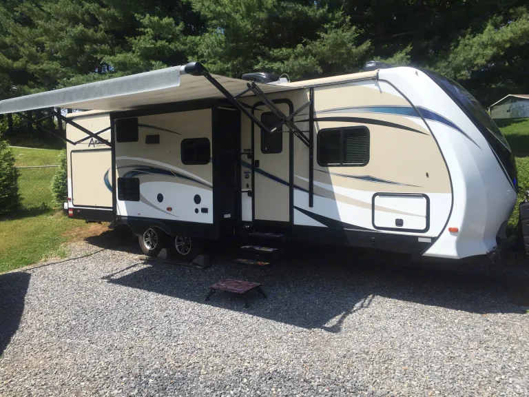 It is fully furnished with linens. kitchen wear , coffee maker , toaster ,microwave, dishes, towels .Has a small cooler & picnic basket for your use. We leave 4 rolls of toilet paper &1 roll paper towels for your use. If you need more toilet paper please use RV rated toilet paper It has a King size bed with 10 in memory foam mattress. Has a huge walk in shower It has a full size bed that pulls out with linens . The kitchen table folds down to make a bed also. It has 2 lawn chairs and 3 carpets for outside use, folding table, 2 tablecloths, small axe, small step ladder , tool box with tools you might need & 3 stacks of level blocks 10 per stack . It has a TV in living room and a TV in the bedroom both have DVD players. The one in the bedroom can also be used outside , the outside kitchen has a connection for TV. Movies and a AM/FM stereo with CD player Speakers inside and out. It has a awesome outside kitchen The outside awning and stabilizers are automatic. I want you to be able to begin your time off and away as easily as possible. If it is available the night before your trip you are welcome to pick it up that evening so you can be on the road first thing in the morning. . There is also a first aid kit, and fire extinguisher at your disposal. There are optional fees that will be added if not returned clean, gray and black tanks empty and keys returned and if camper is not returned by the time that we agreed upon when you departed with the camper . . The camper has two slide outs one on each side and is 31 ft e weight of this camper is about e tow vehicle should be a full size truck with a 2" hitch receiver with a 2.5/16 ball to slide the anti-sway system into. It is a Husky Centerline hitch that does not require sway bars. The vehicle also needs a 7 pin round electrical connector for the turn signals, running lights, and brake lights while it is being towed. Also you must have a brake control on your towing vehicle. If you have questions about whether your vehicle can tow it please don't hesitate to ask. We can delivery within 300 miles , at .60 cents a mile the mileage is times 2 ( that is to deliver then come back pick up camper ) If we are delivering and picking up the lasted we can pick up on the return is 12 noon. Thank you Katherine