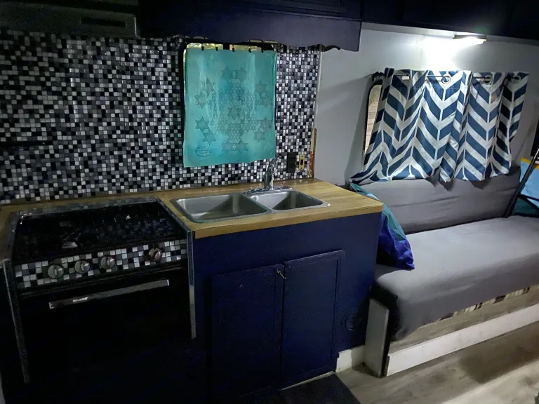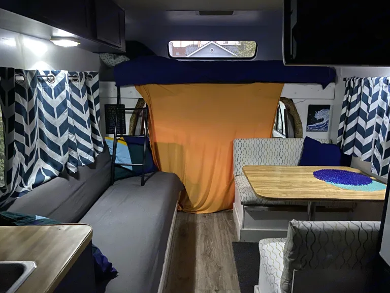 Large Fridge, Lots of storage, Sleeps 1- 4 people, 2 comfortably.It is an older vehicle that works with a carburetor. Be aware, it can sometimes flood at start up, but still reliable and works great.