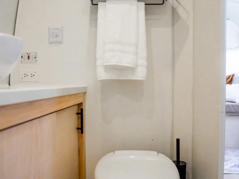 Rest your royal head on the queen-size bed - because even in the great outdoors, you deserve a crown. Bonus points if you bring your own tiara.3. Bathroom Goals: