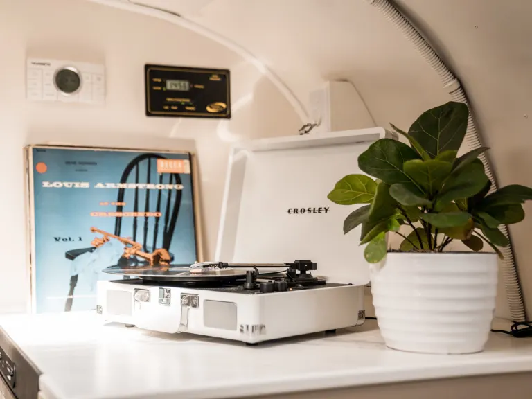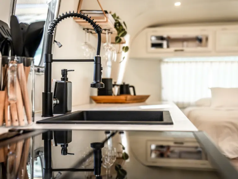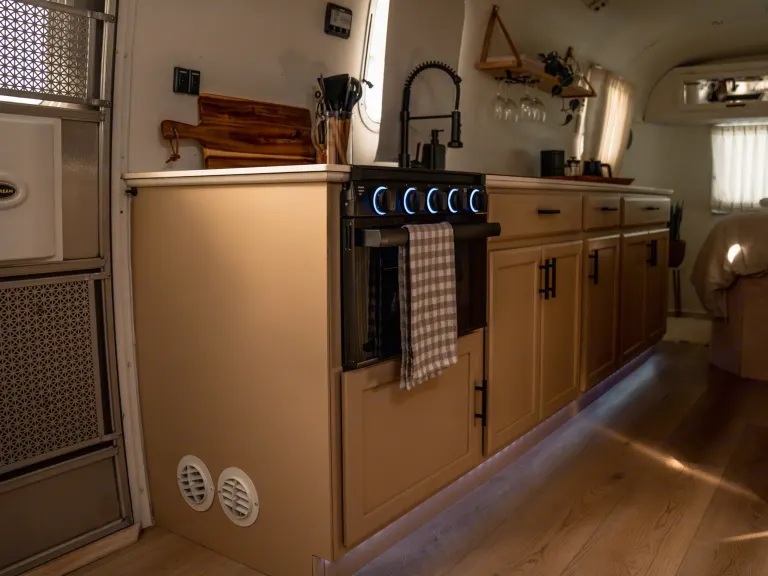 If staying in and making a home cooked meals is something you prefer then the kitchen has everything you need. You'll find a stove top, pots, pans, silverware, plates, and cooking utensils. Cook up a storm in the fully equipped kitchen... who needs a Michelin star restaurant when you've got an Airstream with wheels?5. Beverage Bliss: