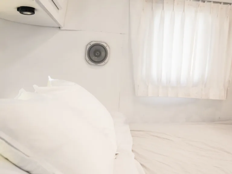 The living room is more than just full L-shaped couch thats large enough to sink back, cozy up, and take one of those deep afternoon naps we all love. Feel free to play one of the provided board games, read a book, or just relax. The record player's got your back with vibes that say, "I'm camping, but make it chic."2. Sleeping Quarters Fit for a Queen: