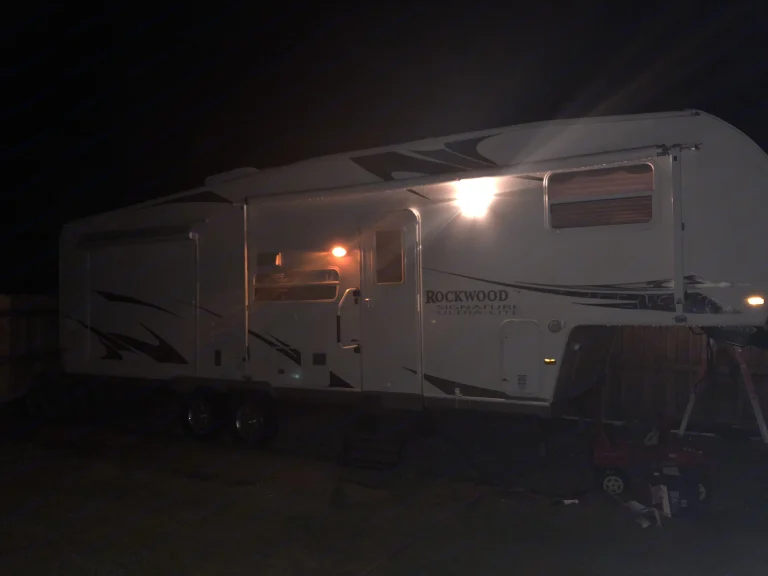 Beautiful spacious fifth wheel, queen suite upfront, bunkbeds I’m back, pullout couch with air mattress, 3 tv’s with auto seek satellite dish and 2 receivers, bath and shower combo. Water heater, cold a/c and furnace, 2 40 lbs propane tanks. Surround sound radio.
