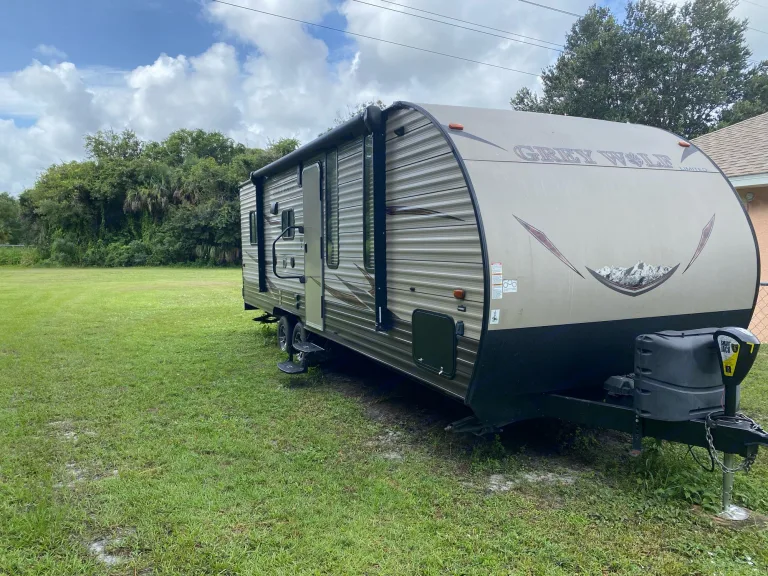 2017 Cherokee Grey Wolf toy hauler with a rear ramp door for loading and unloading your toys. Get set up camp and easily create a great dining area with the table between each fold-down sofa. Enjoy home cooked meals on the three-burner cooktop or the oven, plus there is a microwave for those quick meals. Pantry to pack all of the snacks and canned goods you need for your family vacation. Fall asleep in the master bedroom with queen size bed with easy access to dual-entry bathroomWhat's included4 folding chairs