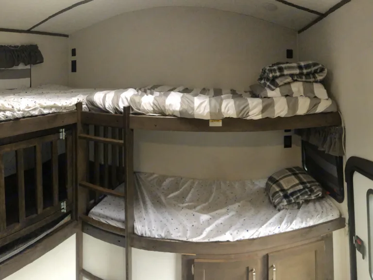 Fun family camper close to the beaches, Disney, Daytona Speedway and KSC. Includes everything you need for a fun camping trip.Our Keystone Passport as brand new with so many amenities for a Great camping trip. Featuring a bunk house with 4 bunk beds, a Real queen size mattress in the master, a full size pull out sofa and full size bed at the dinette and still room to move around!Master bedroom: 4 pillows, bed linensBathroom: Large stand up shower, toilet, sink, lots of room, 6 beach towels, 6 bath towels, 6 hand towels, 6 wash cloths, shampoo, condition, body wash, 4 pack of RV toilet paper, hand soapLiving Room: Sheets for pull out bed, Built in radio with bluetooth, TV, walkie talkies, Small picnic cooler, beach blanket, tote bag, bug spray, sunscreen, umbrellas, kids rain ponchos, card games, small first aid kit, flashlights, citronella candles.Kitchen: Stove, Oven, Microwave, large Stainless deep basin sink, Toaster Oven, Kitchen utensils, large pot, 2 cast iron skillets, cutting board, knives, other misc. cooking items, 6 kitchen towels, 1 drying pad, Keurig coffee maker, cups, paper plates, pitcher, bowls, aluminum foil, trash bags, Clorox wipes, 1 sponge, dish detergent, grill utensils.Bunk house: linens for bunk beds, 4 pillows, 4 blankets, a white noise maker, optional toddler bed rail. One bunk can be made into a toddler bed or kept as a traditional bunk please message to specify which you would need.Outside: outdoor rug, 4 camp chairs, 1 kids camp chair, drying rack, clothes line, garbage bag holder, 1 pack of paper towels, paper towel holder, dish soap, mini fridge, all items to set up camper, 4 ft folding tables, 2 full propane tanks, outdoor shower.Other items such as corn hole, spike ball, additional tables etc. can be added at your request. Please message for information.Celebration package: Camper can be decorated for holidays, birthdays, anniversary, Disney etc upon request. Message us for informationTrailer is cleaned using CDC recommended cleaning agents before and after each use, and trailer is quarantined for at least 48 hour between renters. A container of Clorox wipe, antibacterial soap, and hand sanitizer are provided for each renter. What's includedMaster bedroom: 4 pillows, bed linens, USB plug in by each bedsideBathroom: 6 beach towels, 6 bath towels, 6 hand towels, 6 wash cloths, shampoo, condition, body wash, 4 pack of RV toilet paper, hand soapLiving Room: Sheets for pull out bed (couch and dinette), Built in radio with bluetooth TV, Set of walkie talkies, Small picnic cooler, beach blanket, beach/tote bag, bug spray, sunscreen, small umbrellas, kids rain ponchos, card games, small first aid kit, flashlights, citronella candles.Kitchen: Kitchen utensils, large pot, 2 cast iron skillets, cutting board, knives, other misc. cooking items, 6 kitchen towels, 1 drying pad, Keurig coffee maker (with limited k-cups), spices, cups, paper plates, pitcher, bowls, aluminum foil, trash bags, Clorox wipes, 1 sponge, dish detergent, hand soap, hand sanitizer, grill utensils.Bunk house: linens for 4 bunk beds, 4 pillows, 4 blankets, a white noise maker, optional toddler bed rail, USB plug in each bunk bed. One bunk can be made into a toddler bed or kept as a traditional bunk please message to specify which you would need.Outside items: outdoor rug, 4 camp chairs, 1 kids camp chair, free standing drying rack, clothes line, garbage back holder, 1 pack of paper towels, paper towel holder, dish soap, mini fridge, all items needed to set up camper, 2-4 ft folding tables, 2 full propane tanks, outdoor shower.Items available for additional one time fee: