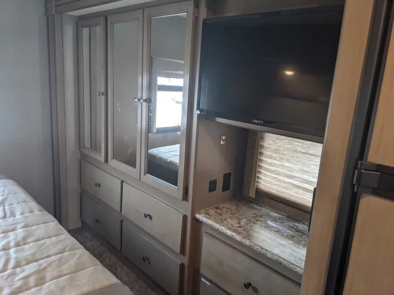 Lupita is our beloved RV that we spent 6 weeks in the summer of 2021. It handled the trip to Grand Canyon, Moab and the Mountains of Colorado with towed Jeep on the back. We almost decided to sell the house and just live in Lupita with our family of four. We spent most nights outside having a drink from the outdoor fridge, watching TV or playing games.Ice cold Air Conditioning made the hot days easier and the heater made the two cold nights comfortable. The tire pressure monitor took the stress out of worrying about blowouts.This class A drives like a diesel pusher because we invested A LOT into the suspension. Sumo Springs to soften the angle around turns. The front stabilizer makes steering a breeze and takes the strain off your shoulders for those long drives and windy days. The additional over-sized rear sway bar takes that tractor trailer blowing you back and forth out of the equation. The extra rear track bar further supports the side to side sway from winds. If you are looking for a more comfortable drive, then Lupita is your choice. This Windsport 29M drives better than all of the others without all of these upgrades and boy does it make a Huge difference.This is really comfortable rig. We seriously considered living it for a while and we may still at some point. Everything you need is here.I kind of hate that it's a Glampor, but it is really nice knowing that it's just as comfortable as home. You can always grab a tent and camp in the heat another time. Other things to notePets welcome! Sorry no cats, the owner is allergic.