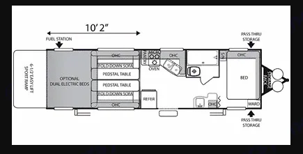 Propane furnace (we also include a catalytic heater that runs on 1 lb propane cylinders, recommended for total dry camping)