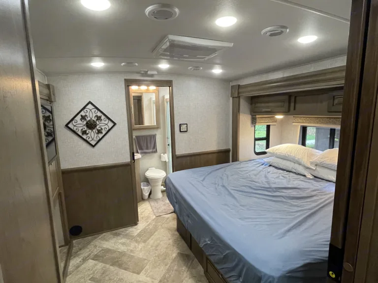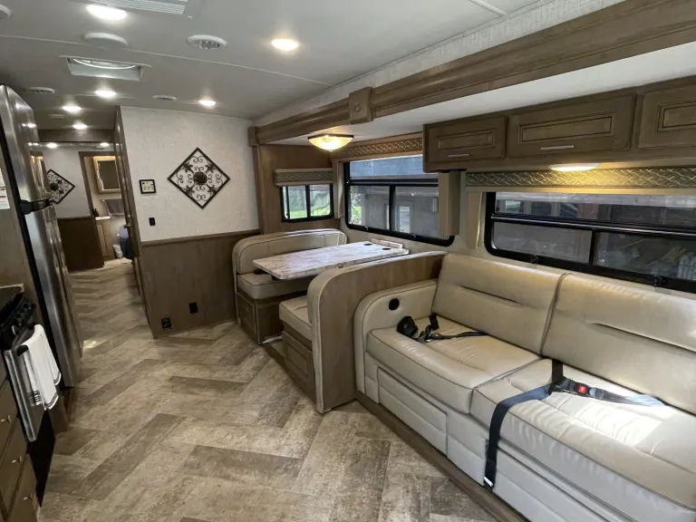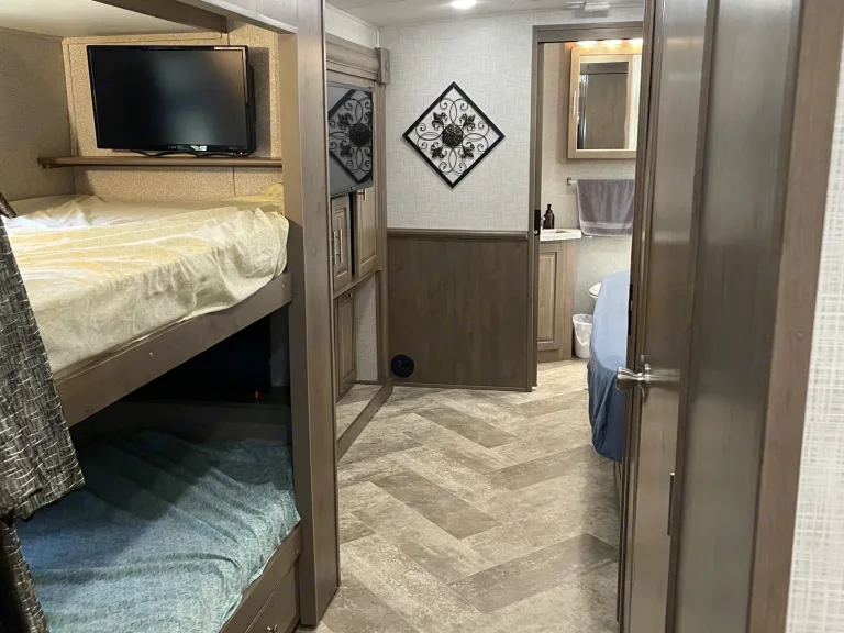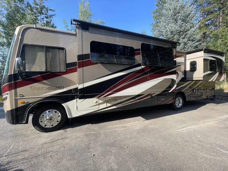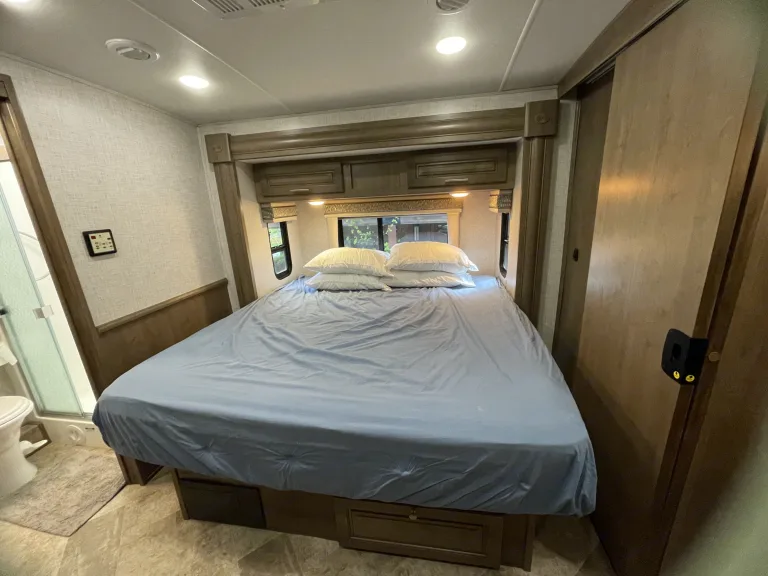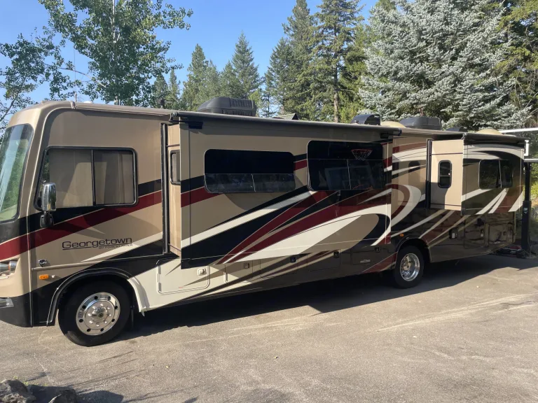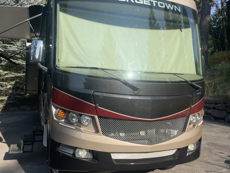 Enjoy the ultimate family camping vacation with all of the luxuries of home! Complete with a king bed (upgraded comfy mattress), two twin bunks, one pull down twin bunk, a full sized couch pull out bed w/ upgraded organic comfy mattress and a table that turns into a bed (fitting one adult or two children).A spacious and comfortable layout with two full bathrooms with residential sized showers, upgraded shower heads and almost endless hot water. Each bathroom has it's own water heater, black tank and gray tank. A huge 18 cu ft residential sized fridge and freezer to fit all the food you need with room to spare! (fridge/freezer can also run on propane automatically if driving or no power).Master bedroom has it's own doors & bathroom for seperation & privacy. Window shades throughout. 3 Slide Outs makes it feel very spacious. Automatic hydraulic leveling jacks have you set up in seconds. Powerful instant on generator for all your power needs when away from hook ups.5 TV's - One in living area, one in master bedroom, one in each of the bunk beds and one outdoor tv (perfect for outdoor movie nights!). (NOT smart TVs) Tons of great storage space throughout!This is not a diesel, though it looks and feels like one, but uses regular gasoline with a powerful triton v10 engine. Can pick up or willing to deliver locally. Will give overview at time of pick up.Please Bring Your OWN Blankets as only pillows and sheets are provided at this time.What's included• toilet paper