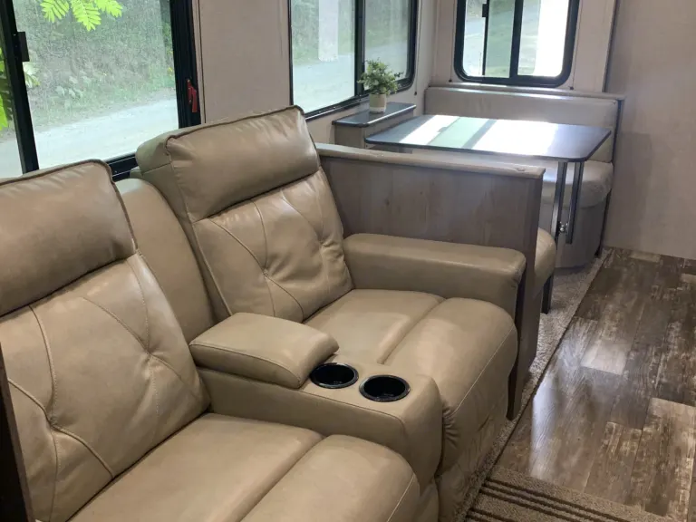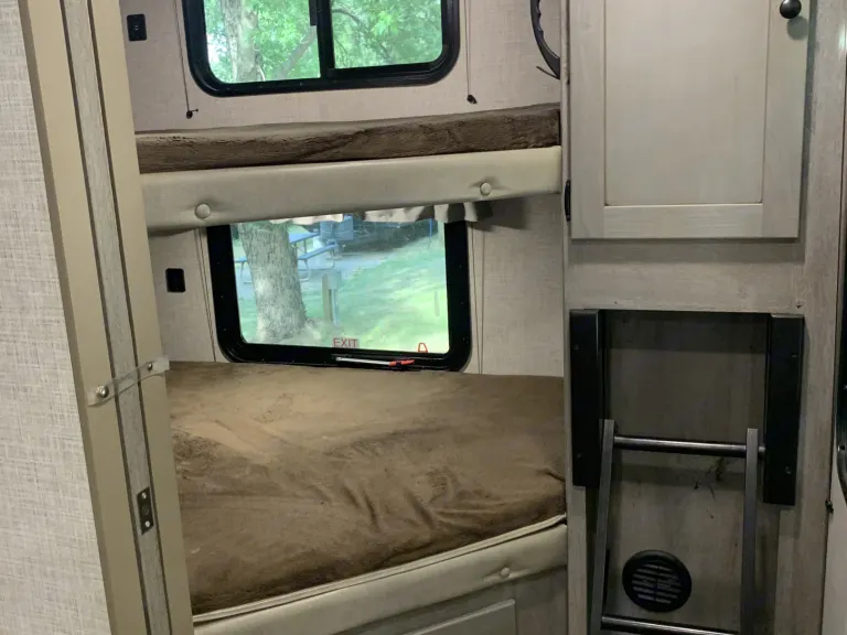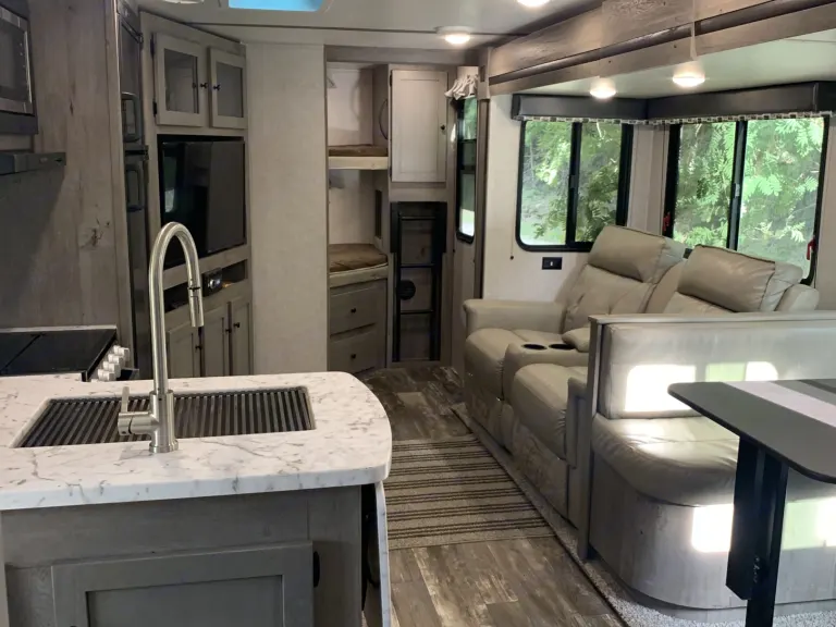 Camping and family fun! Multi sleeper trailer with everything you need. Queen master bed with sliding barn wood door, dining table, reclining loveseat, oversized bunk beds, TV/DVD, sound system inside and out, 20ft outdoor awning, and outdoor kitchen.What's included•Kitchen is fully stocked with dishes and utensils. Walk in pantry, fridge, microwave and stove top and oven.