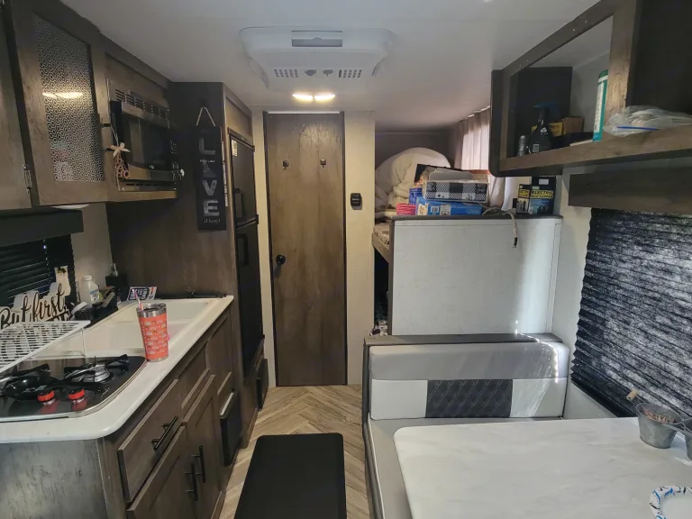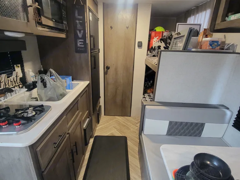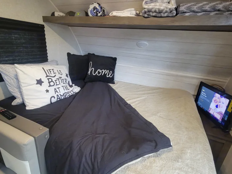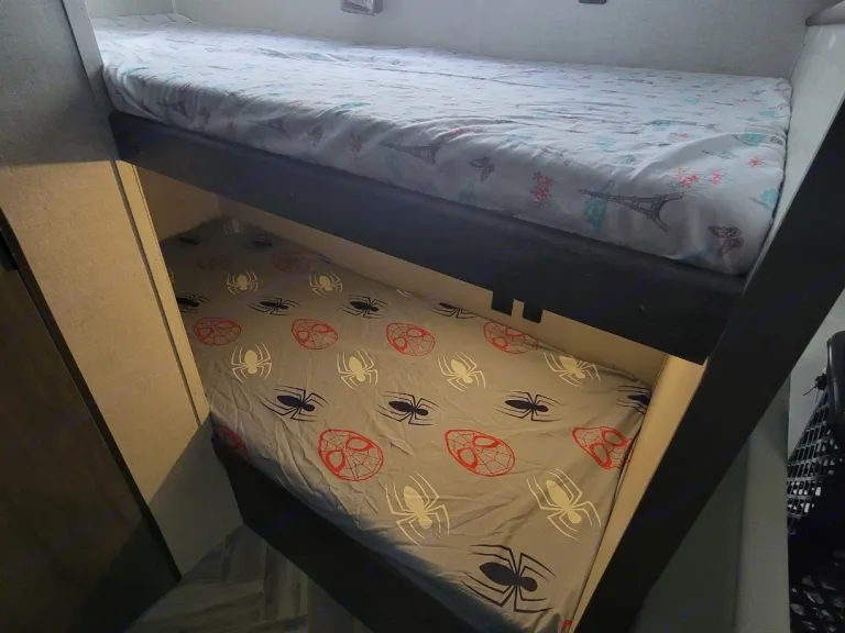 This is a wonderful Salem FSX by Forest River, a popular option for a couples’ road trip or young family’s travels. As a light-weight camping trailer that can sleep up to 5 people comfortably, this camper includes several special features. This camper is in excellent condition and the fridge/freezer runs off propane or electric. Generator available upon request for an additional fee. Full hookups available for water/sewer/electricity. Once you set up to tow this RV, you quickly realize that one of the best ways to hit the road is with the comfort of a home just right behind you.This model is especially known for its many beds — 1, 2, 3, wait what? — 4 in total! The Bunkhouse at the back has 2 doubles beds, and the converting dream dinette is full-size as well for sleeping. Up front is the a Queen bed in a cozy master bedroom with its own personal storage, Privacy Curtain. Don’t get it flipped, though; this RV is suitable for sleeping as much as it is recreation throughout the day. While on the road, feel free to use the bunkhouse as storage for all your goodies and supplies. When you need to take a break, head inside to use the bathroom that of course has a toilet, sink, medicine cabinet, and shower with detachable shower-head. And after setting up for camp, fix something up in the indoor kitchen complete with a generous-size refrigerator, microwave, stove top, and sink, as well as the dinette which can seat up to 4.This travel trailer is lightweight at only 3074 lbs dry (unloaded weight on a single axle) and can still load up to 1100 lbs of your cargo. Some additional cool features include a coffee maker, ref. with separate fridge & freezer, a cover for your 2-burner gas range stove to add extra counter space when not in use, dish-drying rack situation around the sink, A/C & heaters, a 15’ full-length awning with LED lights, manual entrance steps, manual stabilizing jacks below the camper, power tongue jack for ease of hook-up to your vehicle.What's included• toilet paper