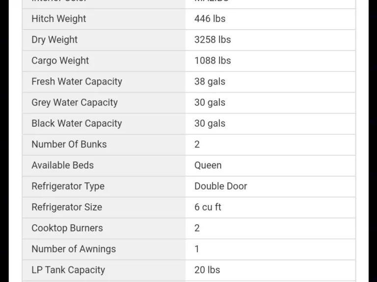 - Hitch weight: 446 lbs