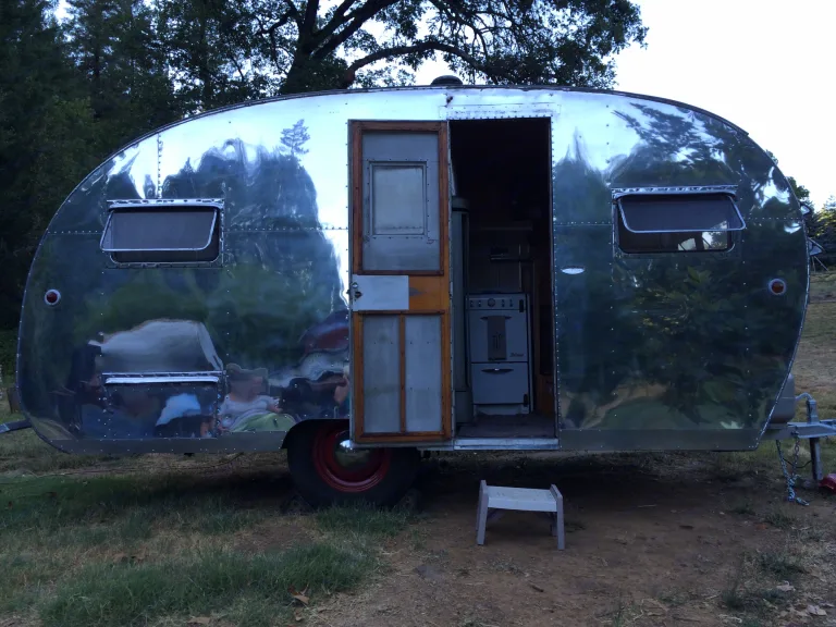 Reconnect with nature in this charming 1950s vintage travel trailer for two.