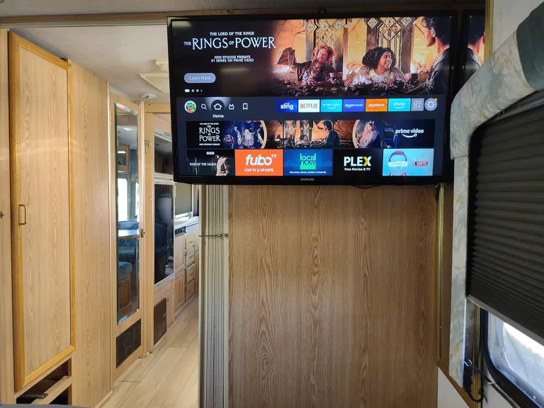 you are always in the right gear especially needed for mountain driving. It has an auxiliary cooling fan for steep climbs. Heavy duty hitch for towing your toys. Hugh basement for storing all your camping and travel needs. Remote control mirrors. Large 20" HD dash color monitor for backup camera that also displays your cell phone screen for directions or entertainment, movies etc. Two roof air conditioners for all room cooling. Largest available panoramic windshield for incredible views. Private toilet, private bath with all glass shower and private bedroom with a super comfortable memory foam mattress and walk around queen bed. I use this RV for ski trips so it is modified to operate in sub zero temperatures. It has an insulated basement for many skis.
