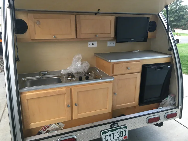 Great lightweight camper with everything needed for a comfortable stay. Including bathroom, shower and full kitchen.