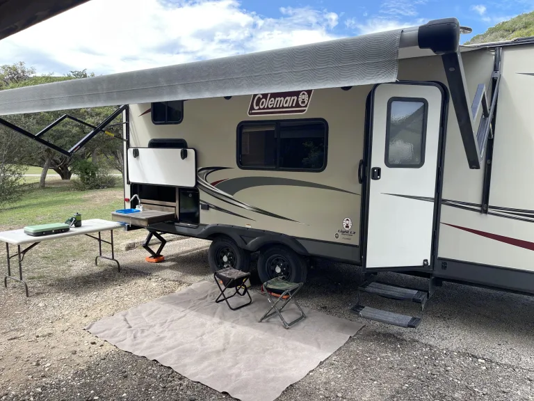 Experience the ultimate retreat with our Coleman travel trailer, your home away from home! This delightful trailer offers the ideal balance of comfort and adventure. Here are some of its exceptional qualities:- Intentionally Furnished - We have had many adventures as a family in this camper, and have used our experiences to help furnish and prepare the space for ultimate fun, convenience, and relaxation!- Soft, inviting furnishings and warm wood accents create an atmosphere that's both welcoming and cozy. Nestle up on the couch with a good book & warm beverage.- High standards of cleanliness. We go above and beyond to make sure that everything is exceptionally clean, fresh & well-organized to make your stay convenient.- Open-air outdoor kitchenette with sink, refrigerator, and space for stove top cooking. Great for cleaning fish and storing choice of cold beverage.- Large windows provide breathtaking views of the natural world just beyond your doorstep. Imagine sipping your morning coffee while gazing at Colorado's stunning landscapes outside.- One queen-sized bed with an upgraded mattress and two cozy bunk beds ensure that you wake up refreshed and ready to embrace the day's adventures.- Indoor/outdoor stereo system allows you to play your favorite music for outdoor gatherings or while looking up at the starry night sky.