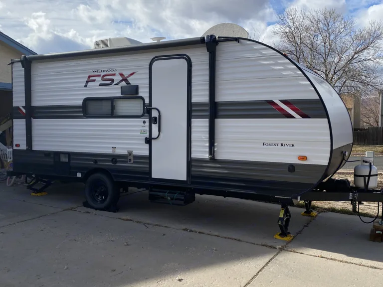 Our trailer is like new! Perfect for a weekend getaway. Has bunk beds, a queen bed, and the dinette folds down into a bed as well. Has a shower in the bathroom and a shower outside. Power awning, ac and a heater that works great to make it super cozy. The underside is completely enclosed and the trailer has a great heater so you can still do some winter camping!Includes linens for the queen bed, cleaning supplies, RV toilet paper and some kitchen basics (see photo).This is a great trailer for fitting into some smaller spaces and you can camp with or without hookups. We do recommend renting a generator or solar power if you plan to go off-grid as we do not have one (yet!)We love to take our furry animals too so pets are allowed, just make sure to tidy after them.What's includedLinens for the Queen bed, kitchen basics for 4 people plus some basics you will need such as cleaning supplies and RV toilet paper.RecommendationsWe love going on quick weekend getaways near Colorado Springs! Because the heater is so efficient, you can go higher up and still be cozy at night.Other things to notePlease keep her tidy! We will include some basic cleaning supplies just in case.