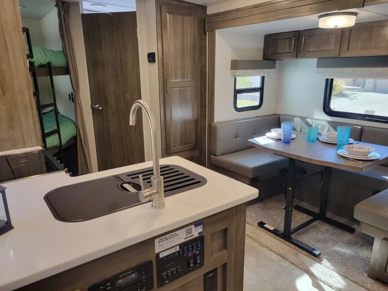 Enjoy spacious family adventures in this easy-to-tow bunkhouse with a roomy slide-out.