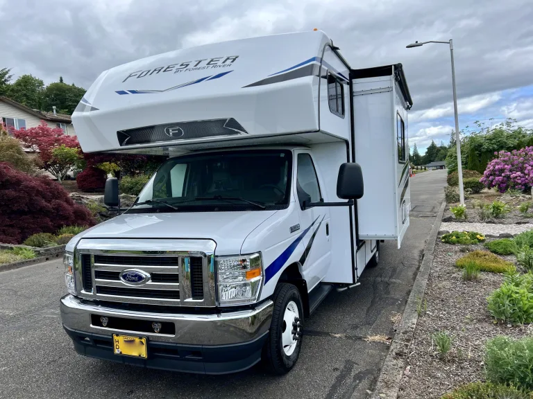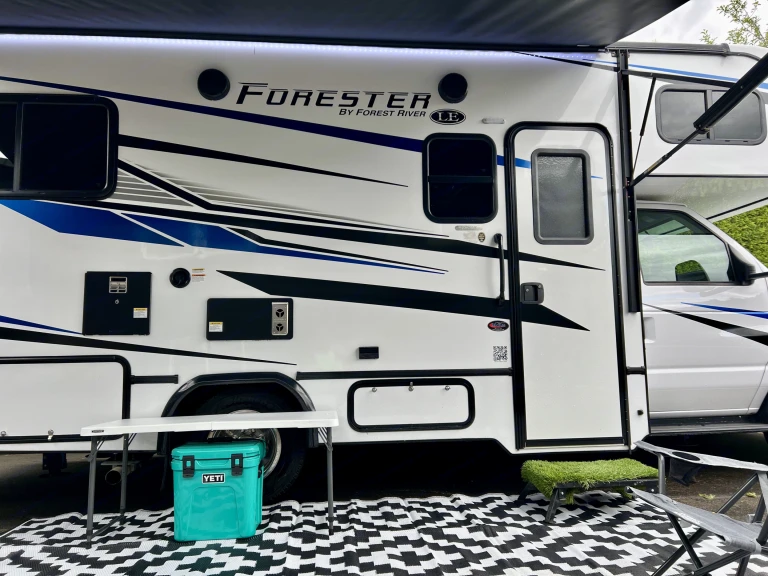Our class C is a one stop rental. The RV is loaded, auto level, generator, power everything, back camera, hitch with 5,000IB towing. We bought this in mind for easy driving and camping. Only thing to do for set up is push a couple buttons. Comes ready to go, bed sheets, camping tables, outside throw rug, easy step for the side door. Delivery and set up available.What's included• Camping table
