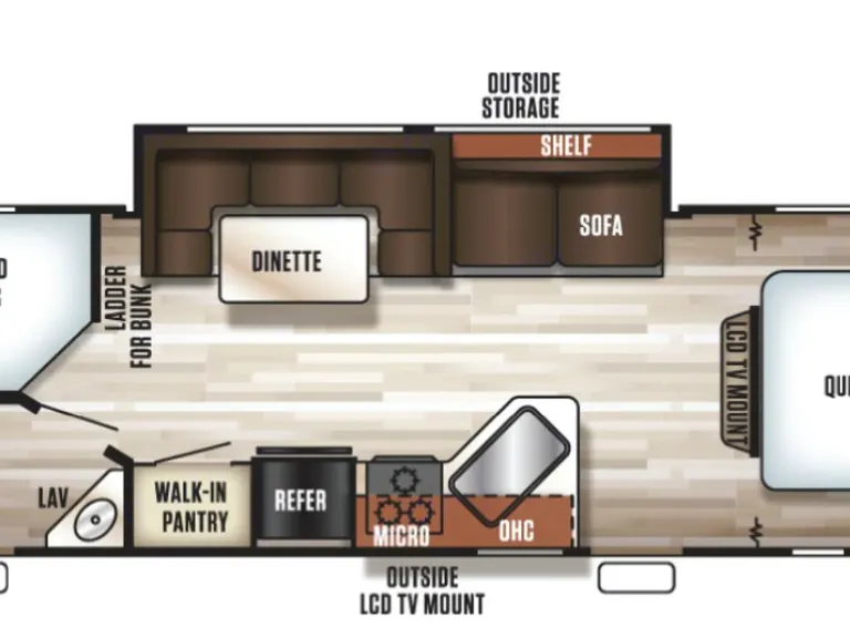32 ft Forest River Cherokee Grey Wolf Limited. Sleeps 6-8 persons. Private queen bed with closets. Sofa and dinette fold out to bed and bunk beds. A/C and heat. Gas range inside and out. Mini fridge on outside.