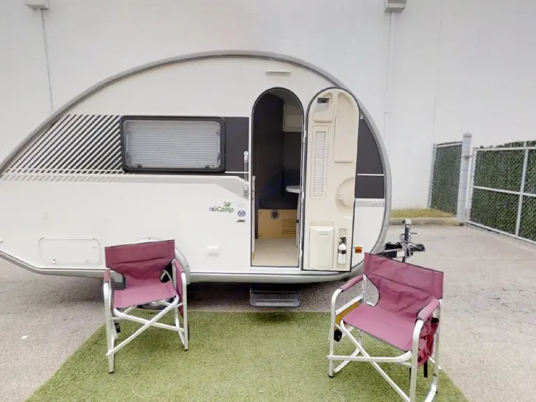 The 18ft. nuCamp T@B 400 is just three feet longer, one foot wider, and one foot taller than the standard Little Guy its apex, the T@B 400 has about 6’7″ of headroom. There is ample living space with a separate bedroom and dining area; however, it's still easy to tow at a target weight of 2,300-2,600 pounds. This unit has 100 percent aluminum framing.The front of the camper features a sleek, curved seating area. In addition to the new design, the table and cushions also fold down into a twin bed with a length of about 80 inches. The queen-size bed is always ready for napping, reading, or viewing. Adjustable LED lamps light up the head of the bed, with a TV at the foot and a large window on the side.Included is a fully equipped, roomy wet bath, complete with toilet, sink and shower. Not shown in these photos is the commode located to the far right, which accommodates even the big and tall. The kitchen area includes a round sink with a two-burner stove, a refrigerator, and plenty of hand-crafted birch cabinetry for storage. A fully enclosed closet, with shelves and closet rod, makes renting easy in the T@B 400. The weight of this T@B 400 is 2,690 lbs. Do not hesitate to reach out to a Road Adventures specialist if you have any questions!