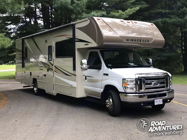 The Winnebago Spirit 31G offers a spacious interior, bunks for the kiddos, a comfortable lounge/dining area, kitchen, sofa/bed, private rear bedroom, and thanks to the included cabover bunk, a variety of sleeping options for family and friends. This model also includes a 4,000 watt Cummins Microquiet Generator, a large rear storage trunk, energy efficient LED lighting, two Hgtv's with DVD player, electric patio awning, back up camera and side mirror cameras.Step inside and find a sofa/bed to your right that is 40"x60" and includes two sets of seat belts for your travelers. There is an overhead bed above the cab for two that is 57"x95". Opposite the sofa/bed near the door you will find additional seating or sleeping space with a booth dinette that also contains two sets of seat belts. You will find a Hgtv above the dinette and a bit of storage for your belongings in each corner.Moving toward mid-coach you will find a kitchen area that offers a double sink, a microwave oven, and a three burner range with oven. Opposite that you will find a pantry and upgraded Large double-door refrigerator freezer. A handy full bathroom can be found mid-coach along the curbside. This space features a corner shower, toilet, and vanity sink, plus overhead storage. Opposite the bathroom you have a set of bunk beds that are 28"x73" that the kids are sure to love.In the rear or the unit is a bedroom space with a queen size bed that is 60"x75" with dual nightstands, overhead storage and a wardrobe. Make sure to close the double sliding doors at night for privacy, and enjoy your own Hgtv. There is also a chest of drawers which are found at the end of the full wall slide.The overall length of the Winnebago Spirit 31G is 32".9'ft. It has a 44 gallon freshwater tank, a 37 gallon black water tank, and a 57 gallon gray water tank. If you have any questions, please don't hesitate to message one of our team members - we're happy to help!