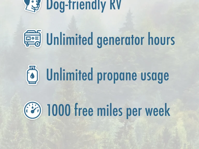 Learn more about Roadside AssistanceRoadside assistance on every rental, plus help planning your trip or operating the RV.