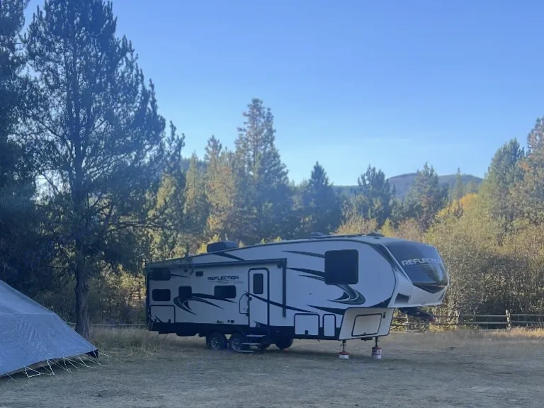 Spacious & Comfortable – Sleeps up to 10 with a private queen bedroom, private double bunk beds, a convertible dinette & sofa bed.Fully Equipped Kitchen – Cook with ease using the stove, oven or microwave, with a refrigerator, freezer, and ample storage for all your essentials.Outdoor Kitchen – Enjoy meals under the open sky with a tabletop PitBoss griddle, mini fridge, and gas burners for extra convenience.Modern & Cozy Interior – A modern design with all the comforts of home, including a 40” TV in the living space, and a stereo with Bluetooth capability to listen to your favorite tunes both inside and outside the camper.Whether you're exploring mountains, forests, lakes or rivers, this fifth wheel can be a second home for your getaway. Book your rental today and start making memories!Available for delivery and set up at your next vacation spot in or around the Northeast Washington or North Idaho area!What's included• Bed linens and pillows for Queen bed, and double bunk beds are provided.