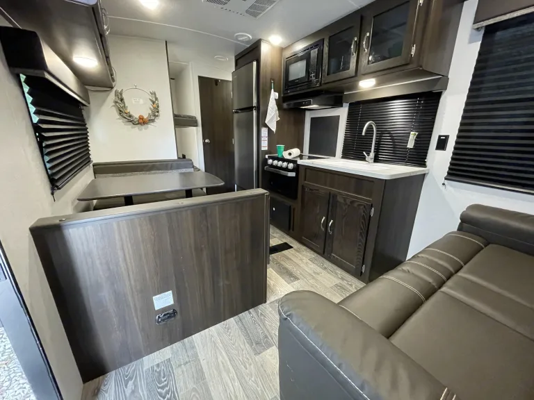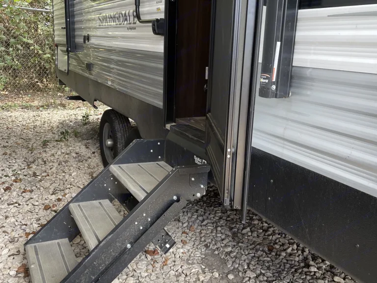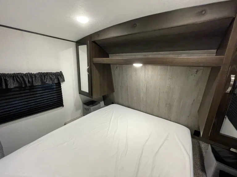 Big Ben is a 2021 Springdale by Keystone trailer that is easy to operate and still looks new on the inside and out. The floors are laminate (faux) hardwood and all the appliances are still new. The master has a regular Queen Bed (not an RV short Queen) and has two full sized bunk beds. Big Ben features an electric awning, 2 showers (one outdoor) a microwave, oven, stovetop, a bathroom and kitchen sink and speakers. Indoor and outdoor speakers have bluetooth and aux capabilities. Tons of storage under the bed and in the pass through. We include silverware and pots and pans so you can cook without having to bring them with you. The rig also has a large water heater tank so you don't have to worry about running out of hot water. At 28 feet its easy to park at any destination. What's includedSilverware, pots and pans, BBQ Utensils, RV toilet paper. Please make sure you bring your own linens and blankets. RecommendationsThere are so many awesome lakes and parks here in Central Texas, Big Ben enjoys going to them all!Need a home base for the big game, you can also enjoy having a home base at the local sporting events! Other things to noteNo Smoking
