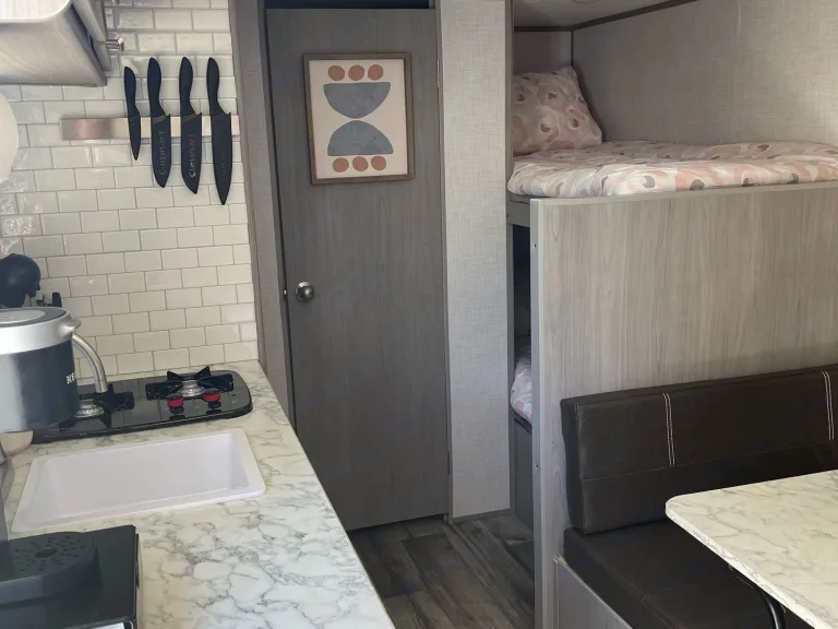 Hello! We are the Lopez family and we want to welcome you to a little piece of our home (extended that is). Before kids we used to get up and go wether that was a 5 hr drive or a 24 hr flight however things have changed quite a bit. It isn’t as easy to pack diapers , bottles, and wipes you always forget something (kids I tell ya). We purchased our RV because not only do we love to travel, but we encourage everyone to travel and explore all the beauty the world has to offer. We’ve created so many wonderful memories while traveling and I hope you and your family will too. We’re so excited to host your family we only ask that you live in the moment ,live life ,and treat our home as if it were yours. Adventure is out there !! What's includedWe’ve equipped our RV to feel like a home away from home, with all the daily essentials and comfort. We’ve included kitchen essentials (for the chef of the family). Our travel trailer is equipped with a shower, toilet, kitchen stove , sink , Tv with Roku, Keurig, plates,pots/pans, microwave , fireplace , kitchen table/seats , variety of spices, awing for amazing shade ,and AC. Sleeps 5 with one Queen bed 2 Twin Beds and 1 Kitchenette that converts. Other things to noteAbsolutely no smoking inside 🚭