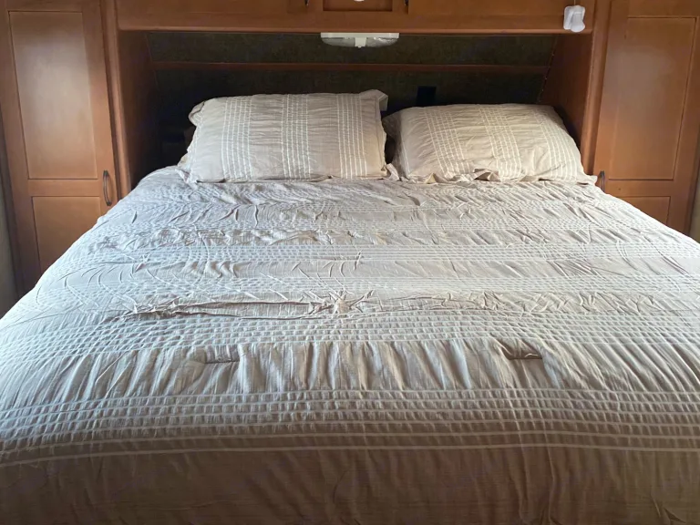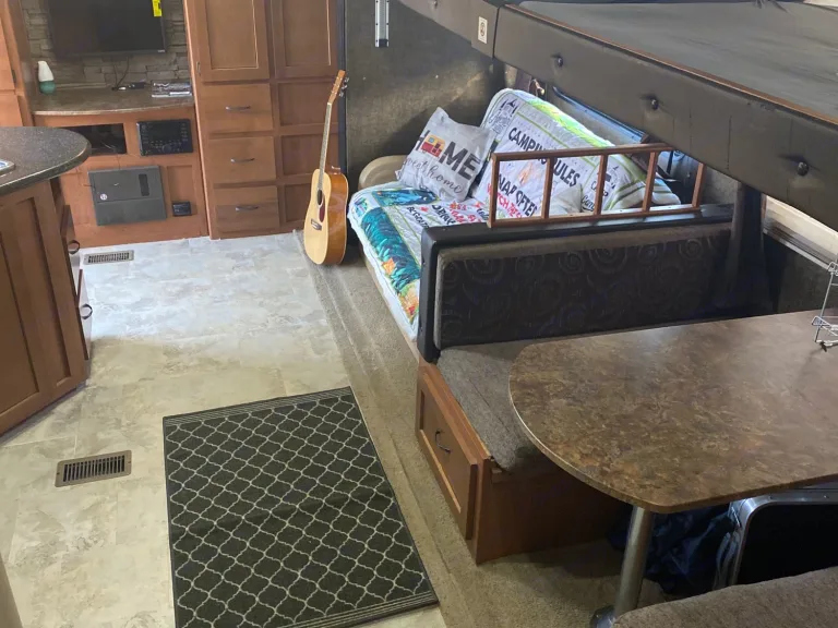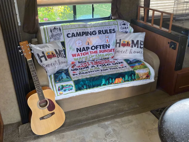Experience the great out doors with this spacious , perfect size 5th wheel! Like new! Super clean ! Upgraded queen mattress , tons of storage , sleeps 8 30 amp hook up! Comes with almost everything you need to go camping ! Weekly and monthly discounts available! I can also deliver to desired location! 2 TVs , , generator if needed . Let me know what you need and we can work it out .. book now!! Camping season is here! Upgraded lithium battery for boon docking .What's includedFresh linens , toilet paper , 2 propane tanks , sewage hose , water hose , towels , and more , coffee maker , ice machine . Message me for custom quote , 4 cots for sleeping , 4 camping chairs , extra pillows , cooking utensils , trash can , cleaning supplies , silverware , extra propane, paper towels , lanterns , 30 amp cord , septic pipe , water hoses . Folding table . Rv mat for outside ,RecommendationsNational parks , Yosemite , lake Tulloch, Coachella , music festivals , beaches , tailgates. Yellowstone , Grand Canyon, lake Comanchee, bottle rock , Santa Cruz , Monterey , Pleasanton fair grounds , boon docking and more . Sonoma race track , formula 1, EDC , Hoover damn , Grand Canyon , extra space for family and visitors .Other things to noteNo smoking , small pets ok . 30 amp electrical. Can deliver to camp site . Sleeps 8 comfortably.