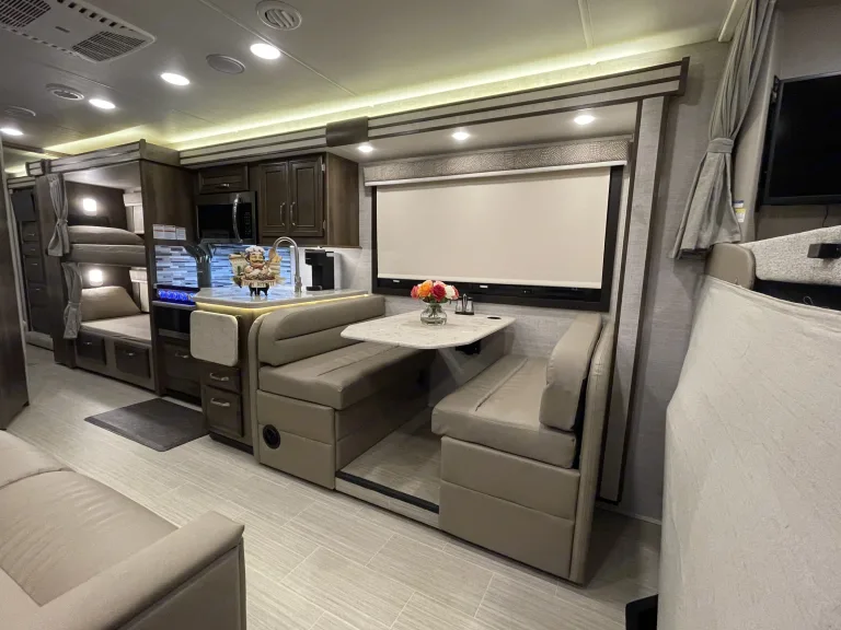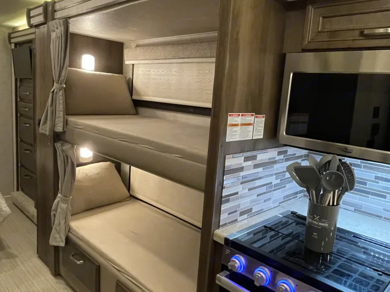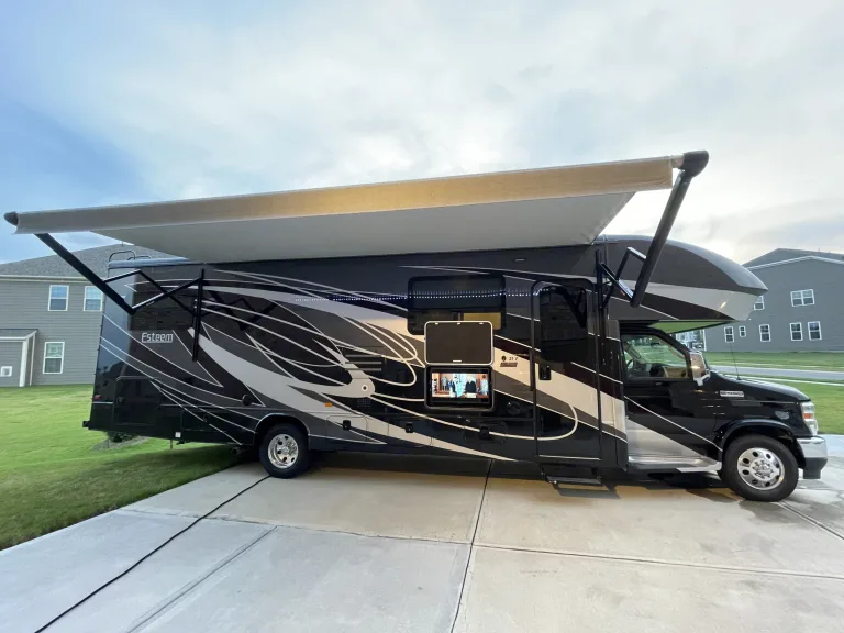 Welcome to our Mobile Travel Retreat! Our family loves this Class C Motorhome and we are so excited to share it with you so you can experience the world of camping in the comfort of your home!Our 2021 Entegra Esteem 31F has a ton of room for you and your family. The motorhome comfortably sleeps 7 and an extended full wall slide on the driver side offers spacious living area with a fold-out couch and dinette.This coach has lots of sleeping areas and a spacious bathroom. The master is in the rear of the coach with queen bed, huge closet and a TV. There are two twin bunk beds each with its own TV/DVD combo and an over-the-cab queen bed with a TV & blu-ray player.The bathroom has two entry doors with foot flush porcelain toilet and stainless steel sink. It has a corner shower with sliding doors and 2 storage cabinets.The fully equipped kitchen has large 12 cu.ft fridge, gas cooktop with convection oven and stainless steel microwave. There is plenty of room to cook and entertain your family!Outside of the camper has a TV and a large awning with LEDs. We also offer 17" Blackstone griddle, two burner Coleman propane stove, 4 chairs and a patio mat for outdoor cook-out and entertainment.This unit is easy to drive and maneuver. It has a backup camera which acts as a rear view mirror and helps you to backup to your site with ease. The sideview cameras engages with the turn signals and helps with blind spots when changing lanes in addition to the large side mirrors. It has a 55 gallon fuel tank and an on-board generator which makes it perfect for boon-docking.We are here to make your trip comfortable and stress-free. Please don’t hesitate to reach out if you have any questions.**For the safety of you and your fellow passengers the RV is fitted with a GPS device.**What's included- Pickup / Drop-off Time: 12 pm EST
