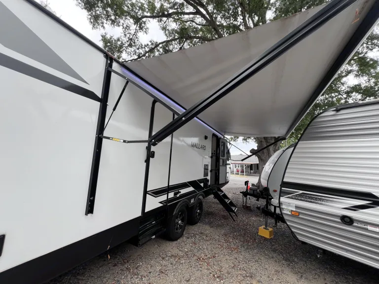 Step into comfort and style with our 2023 Heartland Mallard M267FK. This luxury travel trailer blends modern design with family-friendly convenience, making it the perfect choice for unforgettable getaways.Why You’ll Love This RVSpacious front kitchen with oversized countertops, deep sink, 3-burner stove, oven, microwave, and a residential-style refrigerator. Perfect for cooking on the road.Sleeps up to 4 comfortably with a private master bedroom featuring a walk-around queen bed plus a dinette that converts for extra sleeping space.Dual recliners in the living area with a perfect view of the entertainment center.Smart TV, indoor/outdoor Bluetooth speakers, and LED accent lighting.Full bathroom with shower and vanity, plus abundant storage throughout.Exclusive Upgrade: Keyless EntryNo more fumbling with keys. Our RV features a digital keyless entry system, giving you secure, hassle-free access for a smooth and modern rental experience.Easy & Stress-Free TravelPower tongue jack and stabilizers for quick setup.Lightweight towable design for SUVs and trucks.Delivery and setup available—we’ll bring the RV to your site so you can start relaxing right away.Adventure-ReadyFrom mountain trails to lakeside campsites to festival weekends, the Mallard M267FK is built for making lasting memories.What’s IncludedCookware, utensils, and coffee makerFull propane tanks and water hookup suppliesLinens and towels available upon request (extra fee)Outdoor chairs and rug available as an add-on (extra fee)Our PromiseWe’re committed to giving you the best rental experience possible. From spotless interiors to thoughtful upgrades like keyless entry and plush recliners, this isn’t just an RV—it’s your home on wheels.Book today and let the 2023 Heartland Mallard M267FK take your trip to the next level!