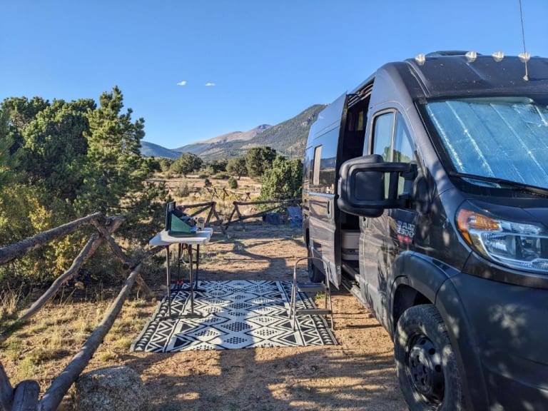 Kelty Trash Park that can handle wood on the way in and your trash on the way outThere is probably more that we are forgetting because we've gotten used to everything being in there - if you have questions, just ask!RecommendationsI highly recommend if you are just trying out van life for the first time to select a destination you know well and camp there! If you are coming from tent camping, the experience is quite different, but extremely rewarding.We often recommend people check out Buena Vista if they are just looking to get away. it's only 1.5 hours away from where you'll pick up the van and is a great little place to camp.If you are a trail runner or a MTB rider, the van makes a great race home base. We love parking at the finish line and rolling out the van door and onto the starting lineOther things to noteDogs are allowed. Cats are not; sorry we are very allergic. We ask that you not bring your dog if they like to chew on things or pee inside when they are nervous. Otherwise we love having dogs. Our late Annabella loved every minute in this van and we are sure your dog will too.Please note the van is FWD and not 4WD. That said, we have never had any issues going into reasonable spots. Just take it slow and you should be fine. That said, if a road is really rutted out and extremely rocky, might not be the best place for Vagrid. But we've only backed out of two spots in the last 3 years, so you should be fine!Smoking in the van is a $500 fine.