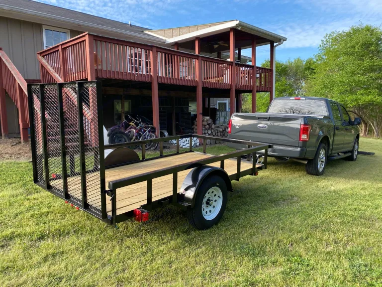 It is a brand new 5.5’ x 10’ tractor supply utility trailer, great for hauling a motorcycle, lawnmower, or a four wheeler. Great for hauling furniture or picking up a new item too big for your SUV or truck.It has a 2” ball and a 4 pin plug. It has a solid wood floor, and a non removable metal mesh gate/ramp.I also have ratchet straps you can rent for $20 in the add on section. What's includedJust the trailerRecommendationsHome Depot, Walmart, the dump, anywhere you please.Other things to noteIt has a 2000lb axle. So all loads must be less than 2000lbs!