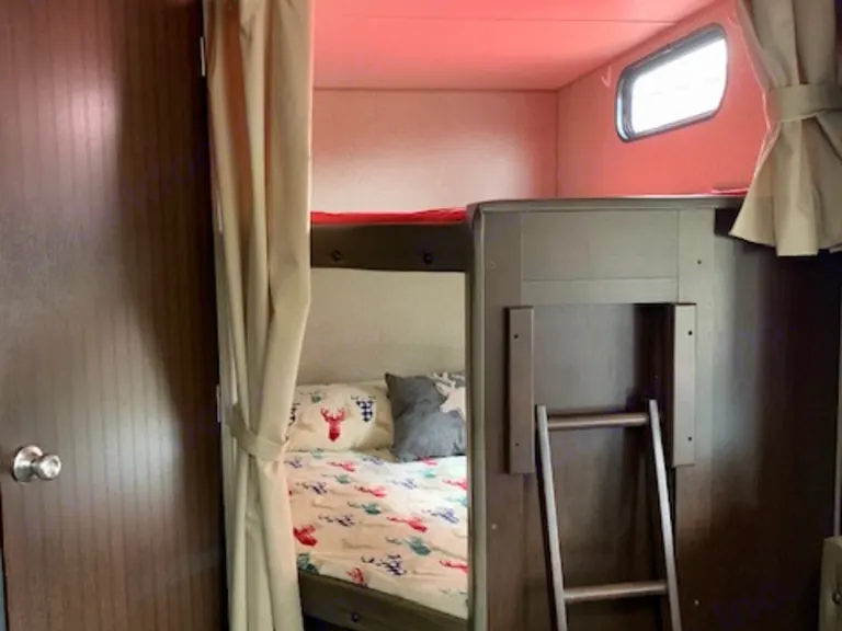 Our trailer is great for 8-10 family and friends! One slide out provides more room. One queen bed in the front with a wardrobe on either side and more storage above. Two full size bunk beds in the back with a light and outlet for each bunk. Sleeps an additional 4 when the table is converted to a bed and the couch is folded out (both best for children) Full bathroom with tub and shower. Unit includes heat and air conditioning. Propane 3 burner stove with exhaust fan, oven, microwave, and nice size refrigerator.Just bring your clothes and food!! Included are kitchen utensils, pots, pans, cups, and dishes as well as linens, pillows, towels, paper towels, toilet paper, shampoo and conditioner. Small toaster, individual cup Keurig coffee maker (refillable pod provided), and regular coffee maker with filters. Card and board games provided for you to enjoy.Storage area accessed from the outside will have 1 6ft table, 6 camping chairs, 1 small cooler suitable for drinks, outdoor area rug, small charcoal grill, tables cloth, lantern, outside hand held shower. Camper also has power side awning with lights, outdoor radio and Bluetooth compatible.**Requirements**