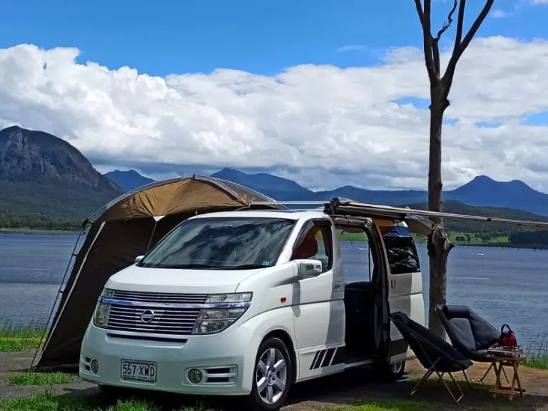 Nissan Elgrand, easy to drive automatic, with plenty of room inside, tinted windows for privacy (reflection screens also provided).