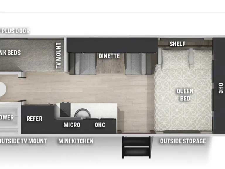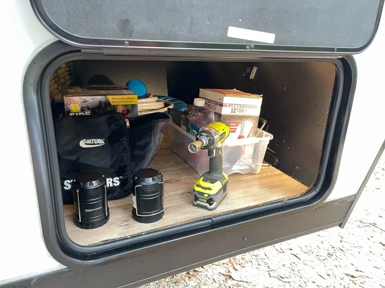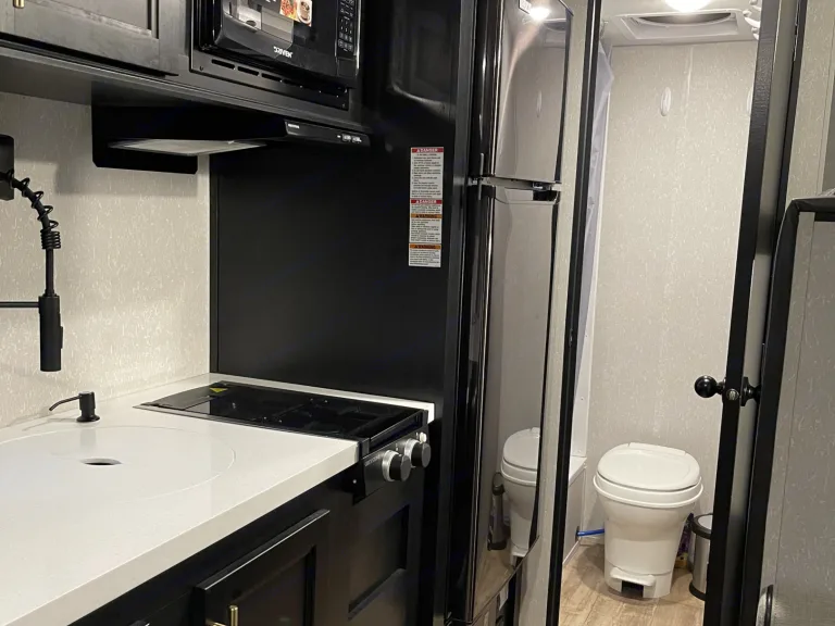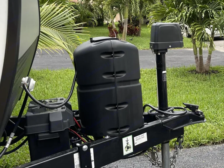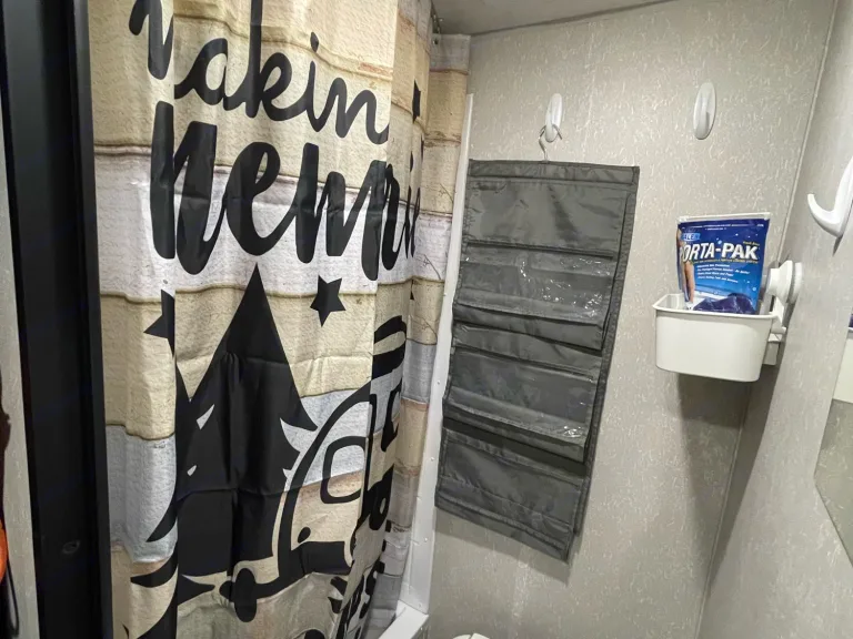 There’s an additional Outdoor Mini Fridge and extra outdoor shower with shower tent; and Water hoses come w/ Filter & Regulator