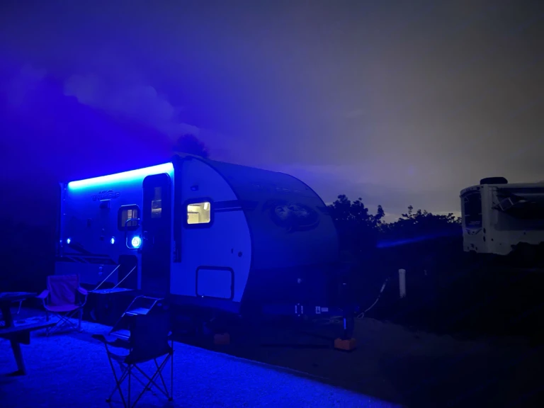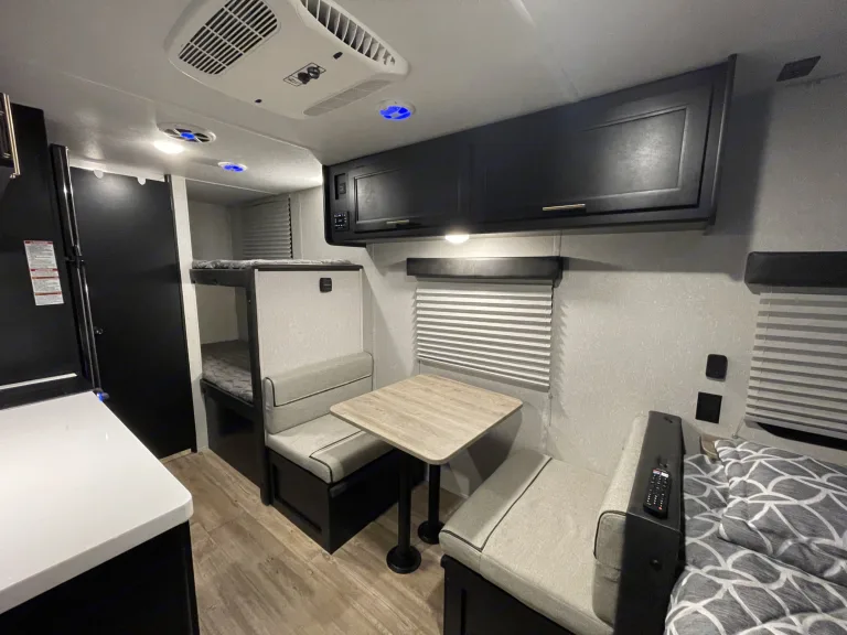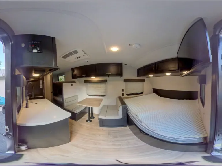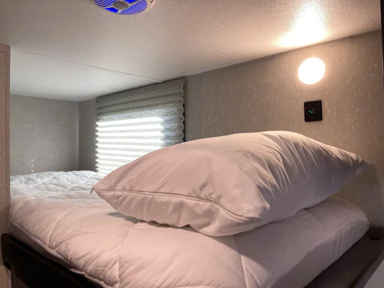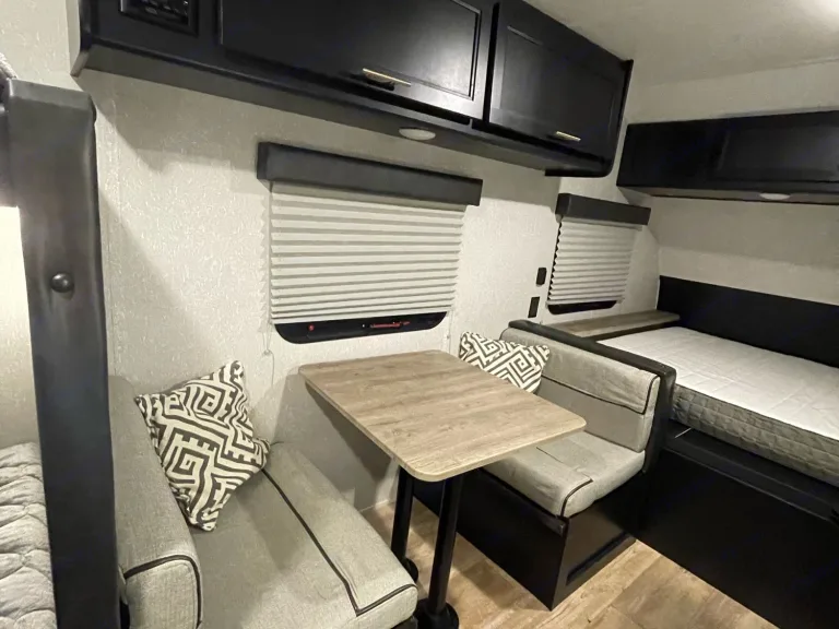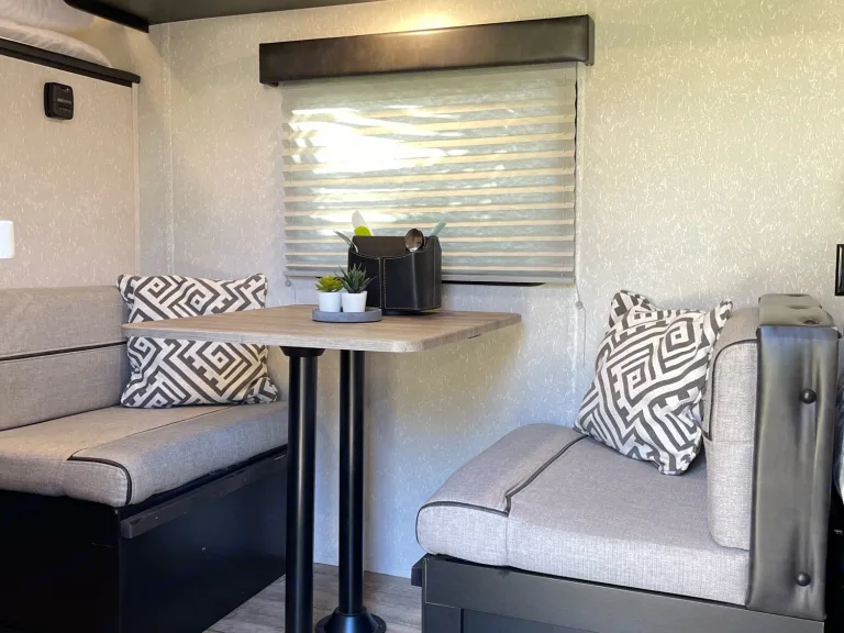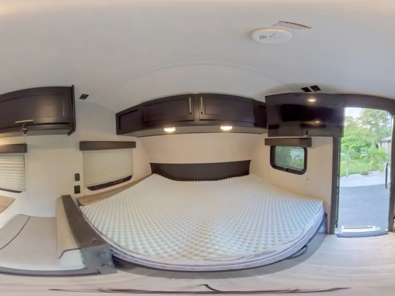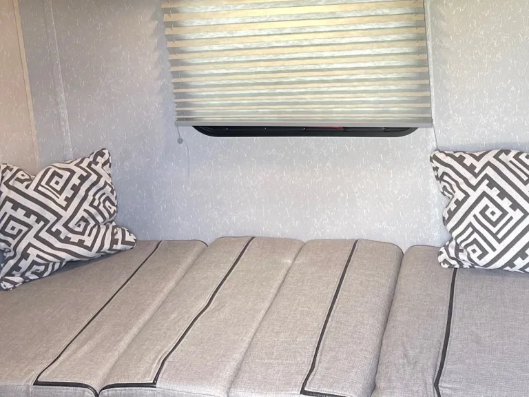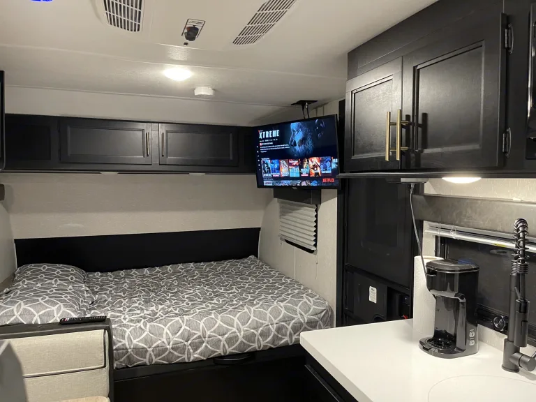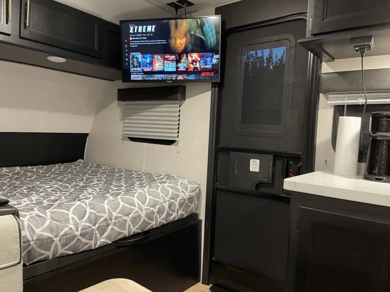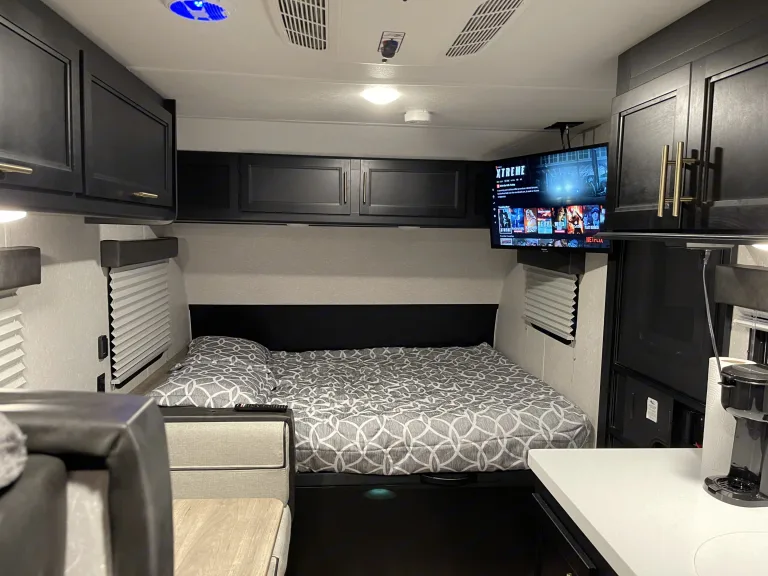 6 nights or less- $110/nightEquipped with Rearview Camera, Anti-Sway Hitch And Electronic Break Assist for added safety and to ensure a comfortable road trip.Has New Super Comfy 8-inch memory foam Queen bed, all with Waterproof covers and charging stations, Dinette is Convertible to BED. Fridge Will RUN While YOU Drive