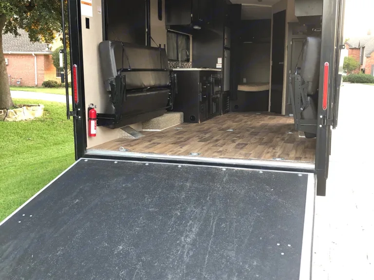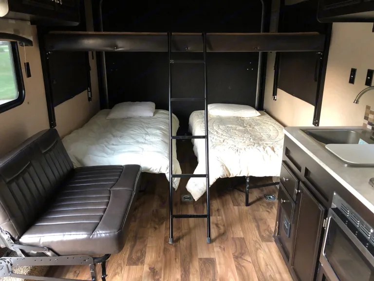 Like NEW! 22 foot Toyhauler sleeps 6 adults comfortably with queen bed, queen bunk bed and 2 standard twin beds. Cargo area converts into roomy interior with two 6 foot benches and dining table, kitchen with double sink, stainless steal microwave/convection oven, stove, refrigerator/freezer and lots of cabinet space. Bathroom with standard toilet, shower, sink and vanity mirror. Indoor/outdoor stereo speakers, outside lighting and 18 ft power awning. Generator available for an additional charge.NON-Smoking. Kitchen equipped with cooking/cleaning utensils & coffee maker.Bring your own paper plates, cups, cutlery, paper towels, bed sheets, pillows, blankets, towels, soaps, shampoo, bug sprays, flash lights, food, outside camping needs, tents, grills, recreation bikes, motor bikes & toys!! Plenty of hauling space!! See Cargo measurements below.Everything you are hauling in the cargo area Must be secured with straps. You must bring your own straps or we can provide straps for a fee. See add-ons.Sway bar provided at no charge.Cargo Area length 8.5 ft, width 8 ft, height 7.38 ft. w/ 24 gal Aux gas tank.Dry weight 5,015lbs, Payload capacity 2,985 lbs, Gvwr 8,000 lbs, Hitch weight 815 lbs, Fresh water tank 59.2 gal, Gray water holding tank 45.4 gal, Black water tank 45.4 gal. holds 2 propane tanks 9.4 gal 40 lbs each (add on).Total Length 26.42ft. Width 8.5ft. Height 11.08 ft. What's includedFully stocked Kitchen with bowls, pots, pans, cooking utensils, coffee makers & filters. Special camper toilet paper. Cleaning supplies. Dish soap. Hand soap. Comfortable mattress padding and covers (bring your own pillows, sheets, blankets & towels). Other things to notePlease review all our add ons. If hauling a motorcycle we require a wheel chock. We have one available for rent, as well as straps if needed.