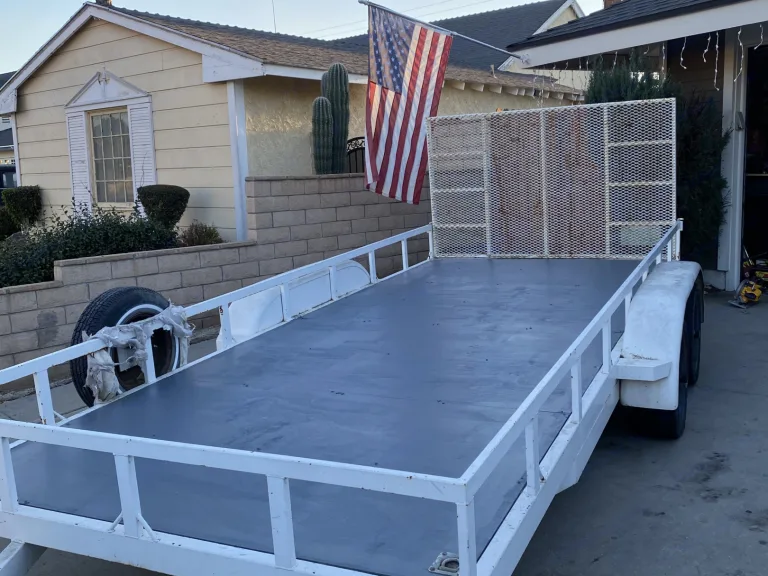 Flat bed trailer with 2 axles and new floor! 2 inch ball required!What's includedSpare tire!Recommendations2 inch ball! Very smooth trailer!