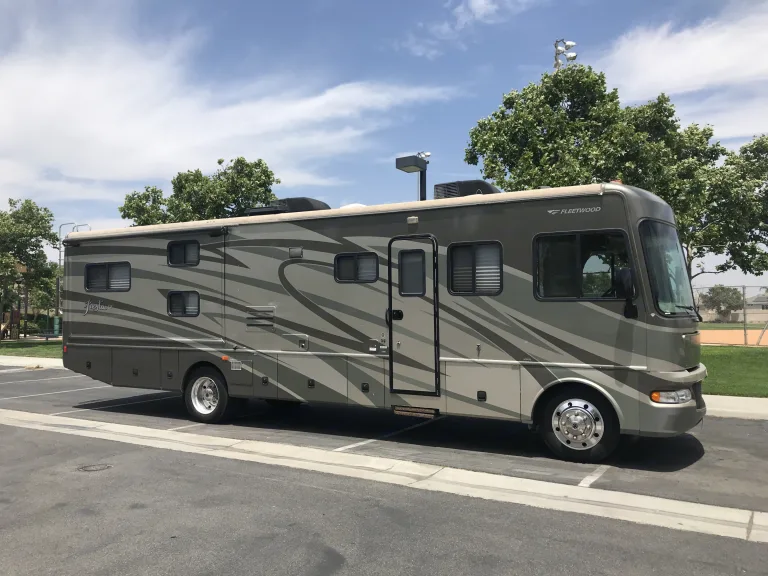 Our 35 foot class A RV is perfect for large family trips. 2 slide outs extend for a spacious living space. 8 people will sleep comfortably. Layout features bunk beds (less common in most RVs) along with a sofa and dinette that both convert into beds. The private master bedroom has a walk-around queen size bed.RV is well equipped with generator, backup camera, 2 A/C units, full tub/shower, 3 burner stove w/ oven, microwave, refrigerator, TV, DVD player w/ DVDs and more. Stocked pot/pans & cooking utensils.Towing capable with 2” receiver / 8 pin tow connector.***Desert/Offroad campers: please return our RV dust/dirt free. Inside needs to be dusted and wiped down. Exterior dust/dirt hosed down. Cleaning fee will be charged if not returned in reasonably clean condition.