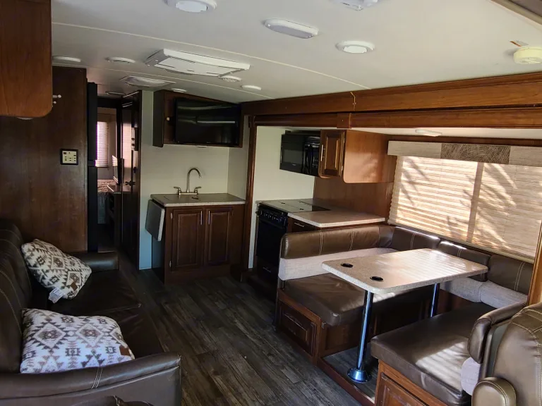 Welcome to Fr3e to Roam, our home away from home. We would love to share our home with other families looking for an adventure. Fr3e to roam is a 32 ft bunk house Class A, gas motorhome with plenty of sleeping, storage and fridge space. Features a King size bed, bunks with a futon style bottom bunk, pull out sofa, dinette, and drop down bed over the cab. The kitchen kitchen is equipped with a mircro wave, gas stove, oven, double sink, and a double fridge. The rig also includes 2 A/C units, hot water, 4 tv's and plenty of storage below.