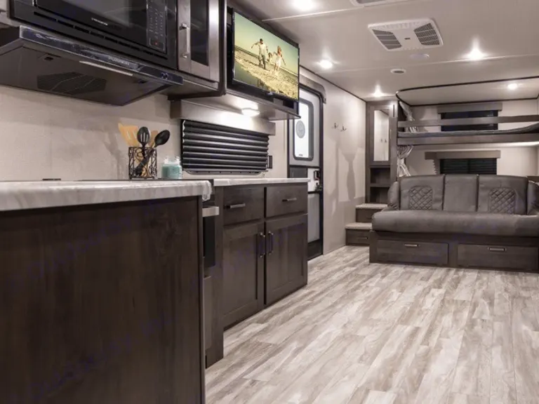 Are you ready to camp in comfort with your family or friends and make a wonderful memories? This travel trailer allows you to do just that! There are double-size bunks in the back with two steps that have storage for books or board games. Spacious living room and bathroom. Great for big families!We offer no hassle camping with drop off and pick up option.Let's go camping!What's includedPillows and fresh linens are provided. Also fully stocked kitchen with plates, utensils, pots.