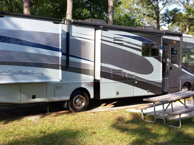 2005 Fleetwood Southwind 37C in beautiful condition. Full body paint. Very well maintained. 40,000 miles. Brand new rear air conditioning unit. 3 slides, side by side refrigerator with icemaker, Upgraded flat screen televisions in living room and bedroom. Upgraded faucets. Reupholstered bedroom appointments with custom matching bedspread. Washer/Dryer. Not many in this kind of shape.