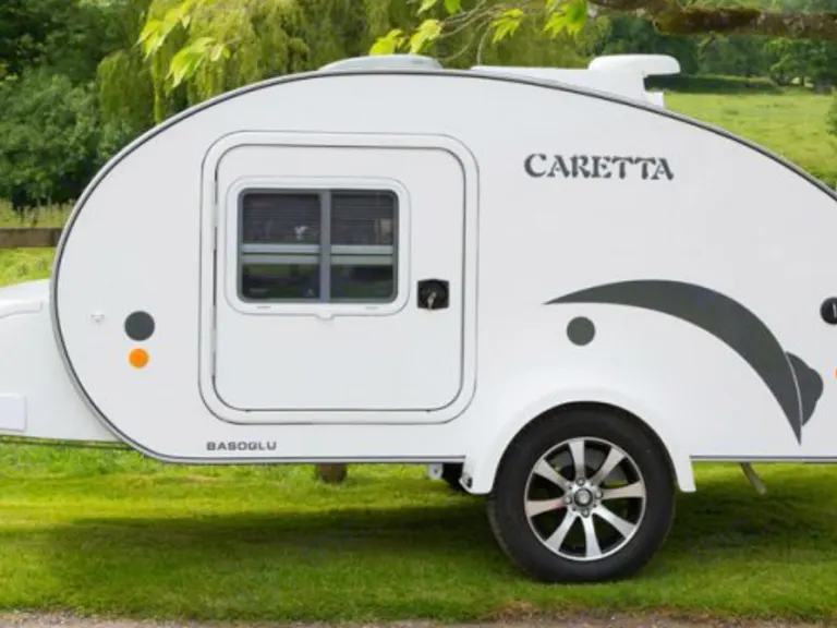 Pour partir à 2 avec sa propre voiture, la Caretta est la mini caravane qu'il vous faut ! Matelas confortable, rangements, cuisine, frigo, évier, douchette extérieure et feu gaz !
