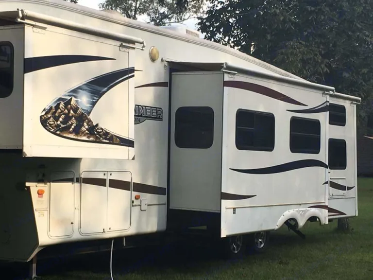 4 slides, two A/C's, 2 1/2 baths, outside cooking station with a grill that will mount to side of camper. 3 TV's
