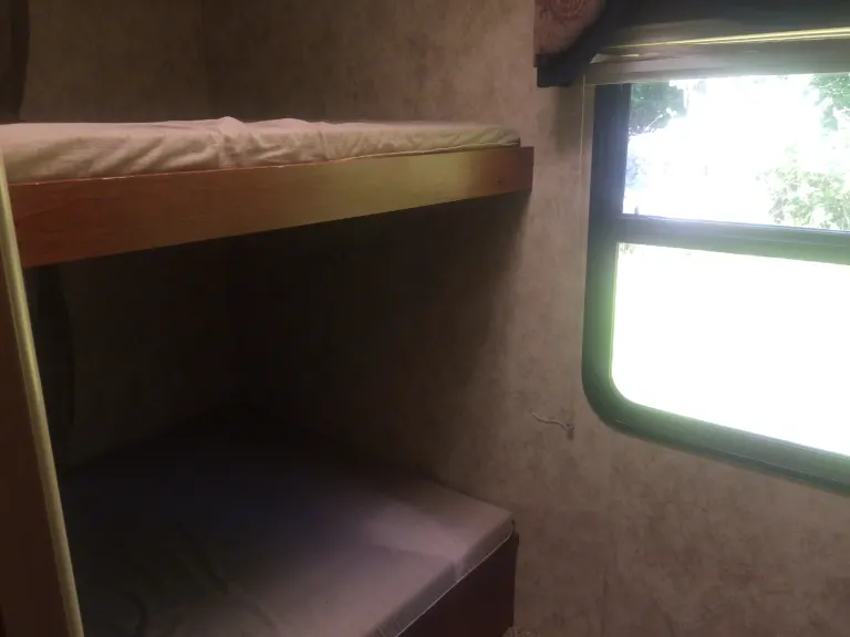 Bunkhouse, automatic awning, outdoor kitchen, DVD player, flat screen TV, sleeps 8