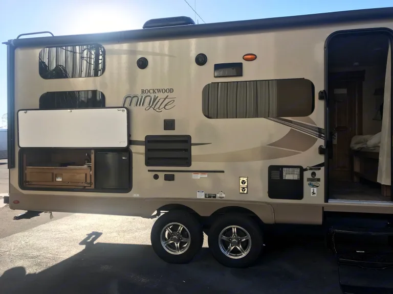Little Families Adventure! Pet friendly and lots of upgrades! Enjoy your family getaway in this cozy Rockwood Mini light with indoor and outdoor kitchen, outdoor shower, and bathtub!